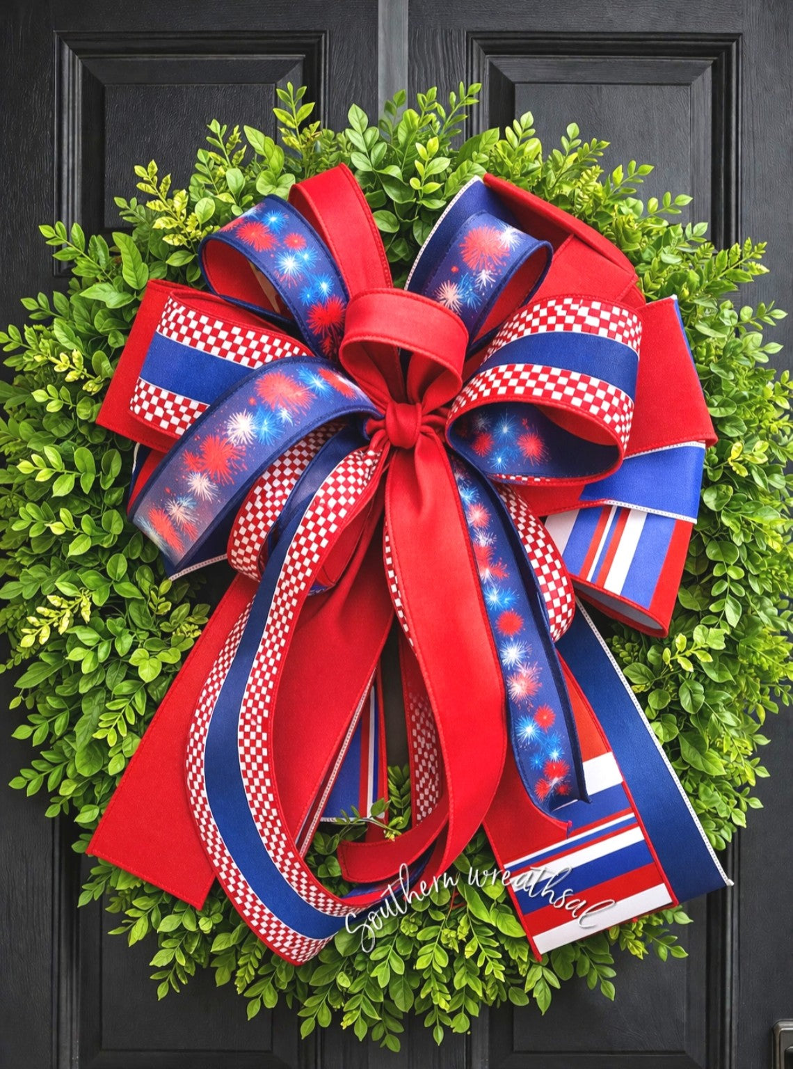 Whether displayed on a wreath, mailbox, garland, lantern, or entryway décor, this bow brings a festive and upscale Americana feel that’s perfect for Memorial Day, Fourth of July, and all summer long.